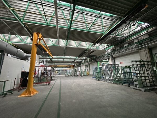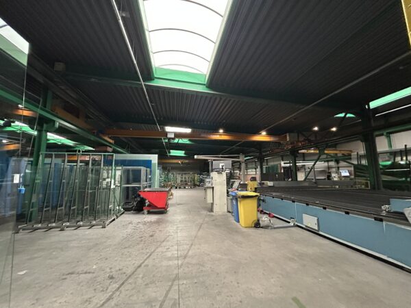 De ruime hal is geschikt voor opslag, productie of atelieractiviteiten en beschikt over: 17 rolbruggen met een capaciteit van 3 tot 6 ton, 3 hoogspanningscabines, meerdere laad- en loskades, gelijkvloerse sectionale poorten. Daarnaast zijn er personeelsfaciliteiten aanwezig, waaronder een uitgeruste keuken met refter, toiletten, kleedkamers en douches.